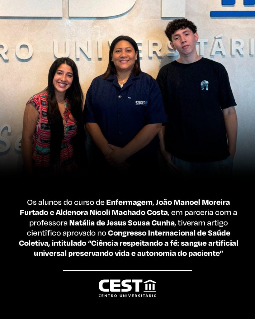 A produção científica no campo da saúde segue avançando com iniciativas que aliam conhecimento técnico, sensibilidade humana e compromisso ético. Um exemplo desse protagonismo é o artigo desenvolvido pela professora Natália de Jesus Sousa Cunha, em parceria com os acadêmicos João Manoel Moreira Furtado e Aldenora Nicoli Machado Costa, do curso de Enfermagem.